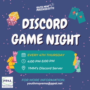 What does the YMM Server offer? Youth MOVE Massachusetts has created a Discord server for young adults (16-25) to have a safe space to connect with YMM staff and other youth! Our goal is to build an online community where you can share experiences, exchange resources, and